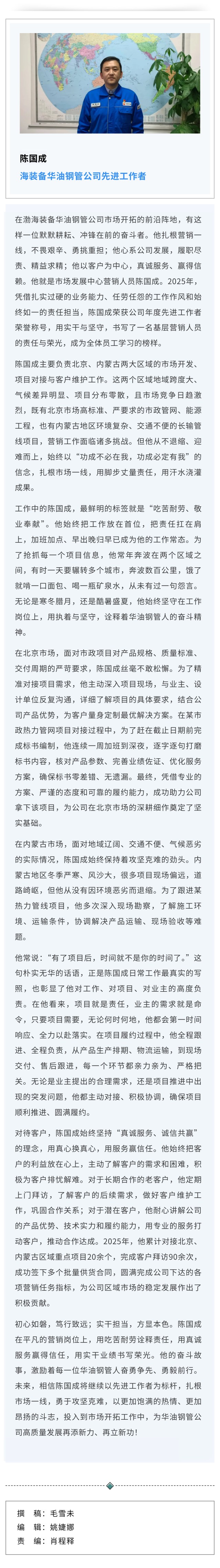 渤海装备陈国成:坚守一线拓市场 实干担当争先进