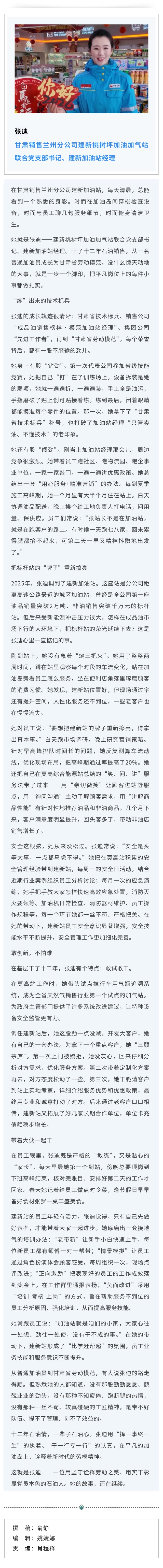 甘肃销售张迪:让劳模精神在加油岛上闪光