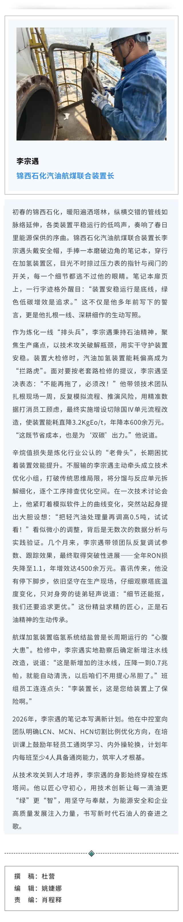 锦西石化李宗遇:塔林践初心 匠心护油安
