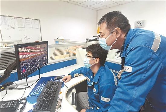 大连石化员工收看二十大开幕会盛况。 蒋林 摄