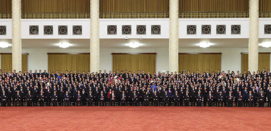 10月23日下午,中共中央总书记、国家主席、中央军委主席习近平等领导同志在北京人民大会堂亲切会见出席党的二十大代表、特邀代表和列席人员,并同大家合影留念。新华社记者 鞠鹏 摄